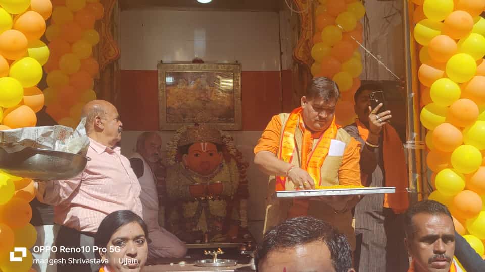 शुभ घड़ी में भगवान श्री राम अयोध्या में विराजमान हुए इस शुभ घड़ी के उपलक्ष में आज उज्जैन अवंतिका नगरी में कंठाल चौराहे पर हनुमान जी के मंदिर में विधि विधान से महा आरती का आयोजन किया गया इस अवसर पर आज भारतीय जनता पार्टी उत्तर विधानसभा के विधायक अनिल जैन कालूखेड़ा भारतीय जनता पार्टी के नगर अध्यक्ष विवेक जी जोशी साथ ही कार्य समिति सदस्य जगदीश जी अग्रवाल भारतीय जनता पार्टी के नगर उपाध्यक्ष जगदीश जी पांचाल मुकेश जी यादव बजरंग दल पूर्व नगर जिला संयोजक मंगेश श्रीवास्तव साथ ही हमारे नगर जिले के मीडिया प्रभारी दिनेश जी जाटव पार्षद भाई गब्बर जी भाटी और वरिष्ठ नेता श्री दीक्षित जी और भारतीय जनता पार्टी की सकोषा प्रमुखभारती पर पनिया दीदीपर पन्या जी भारतीय जनता पार्टी के कई वरिष्ठ नेता एवं विश्व हिंदू परिषद के नेता और बजरंग दल के भी कई कार्यकर्ता आज कंठल चौराहे पर महा आरती में सम्मिलित हुए साथ ही आज ढोल धमाके और घंटा को की गूंज से आज कंठल चौराहे पर बजरंगबली के मंदिर पर अयोध्या में आज रामलाल विराजे इस शुभ घड़ी में भगवानबजरंगबली की आरती की गई साथ ही बूंदीका प्रसाद गाजर के हलवे का प्रसाद का भी वितरण किया गया और सभी भक्तजनों को भगवान राम के दुपट्टे पहनकर एक दूसरे को बधाई दी गई और रामलाल के मंदिर में विराजमान होने पर सभी एक दूसरे को बधाई एवं गले मिलकर खुशियां जताई इस अवसर पर सभी भक्तगण एवं बजरंग दल विश्व हिंदू परिषद और भारतीय जनता पार्टी के वरिष्ठ जन उपस्थित रहे।