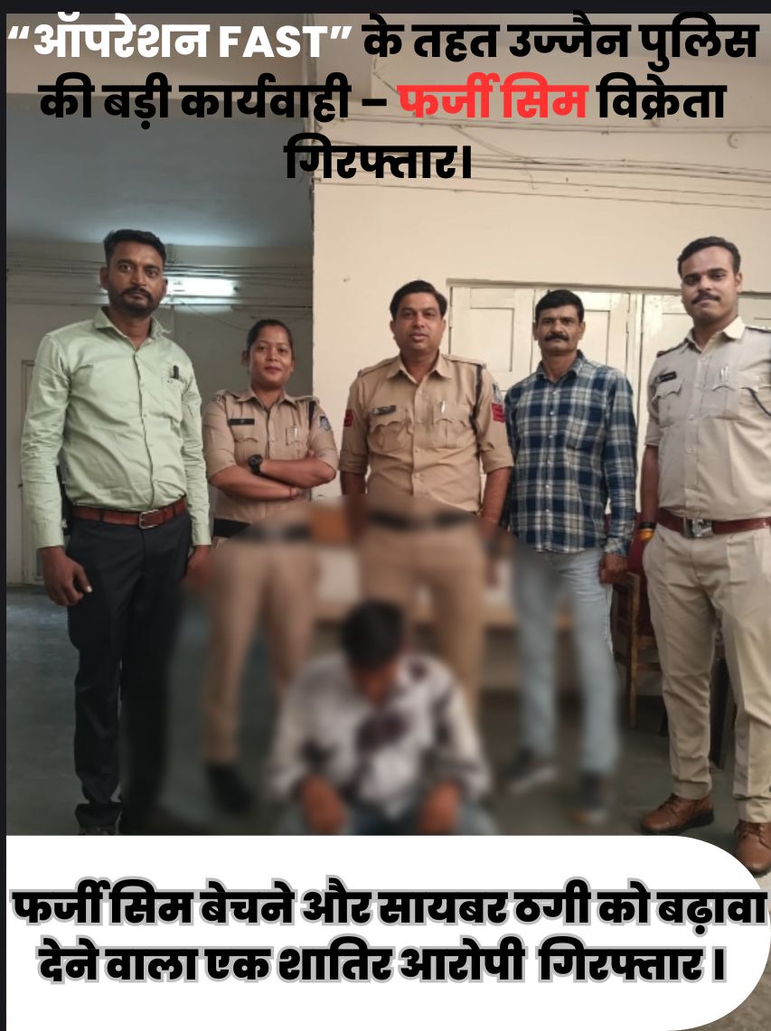 • उज्जैन जिले में “ऑपरेशन FAST” के अंतर्गत उज्जैन पुलिस द्वारा एक बड़ी कार्रवाई की गई। जांच में सामने आया कि आरोपी इमरान पिता सलीम नागौरी, उम्र 25 वर्ष, निवासी आगरा नाका उज्जैन फर्जी सिम कार्ड जारी कर लोगों को शिकार बना रहा था।